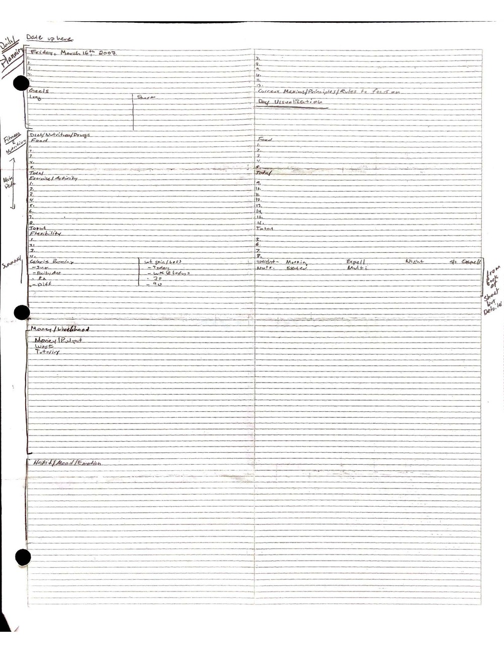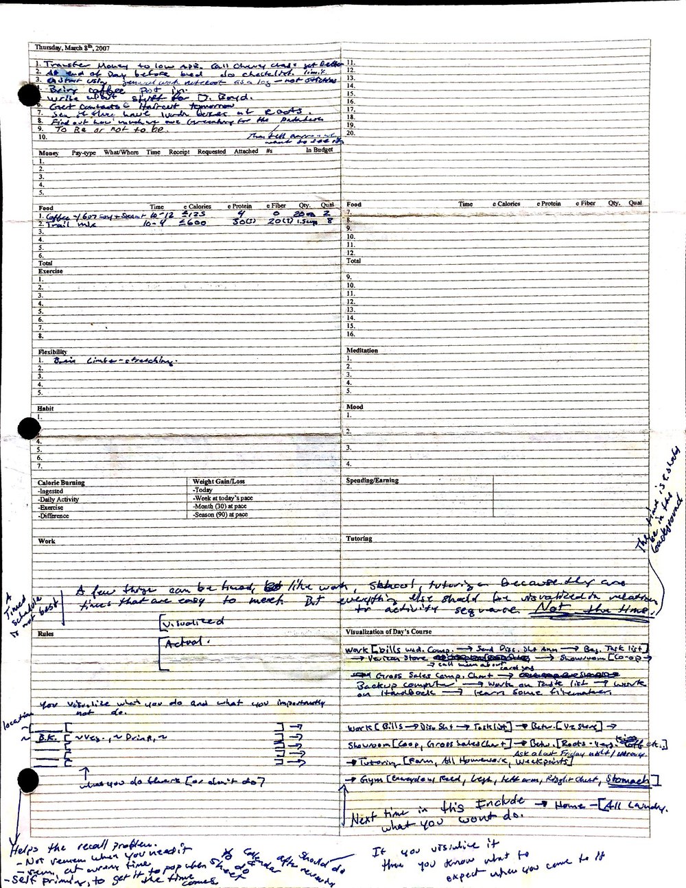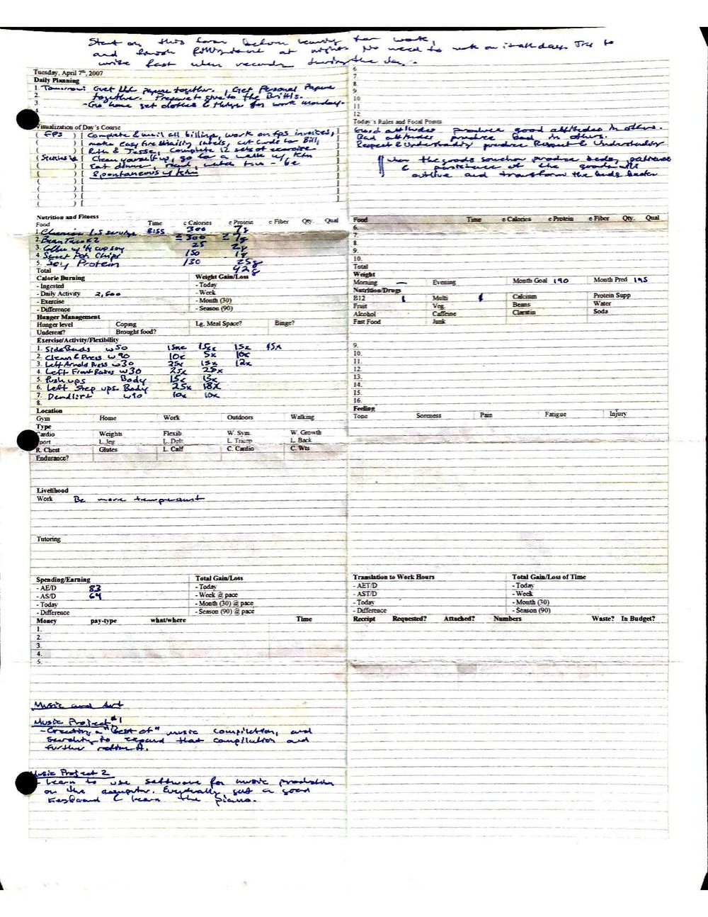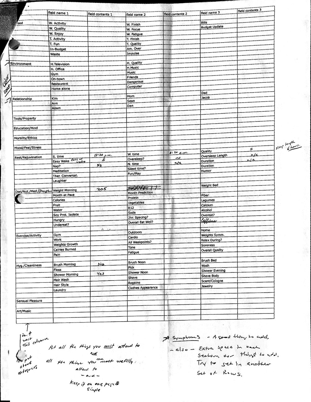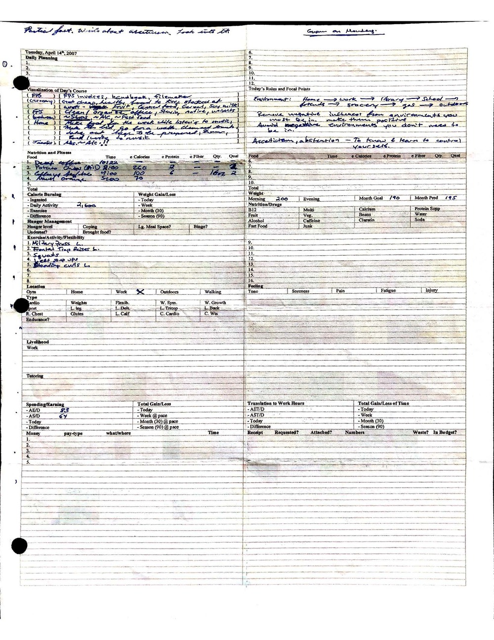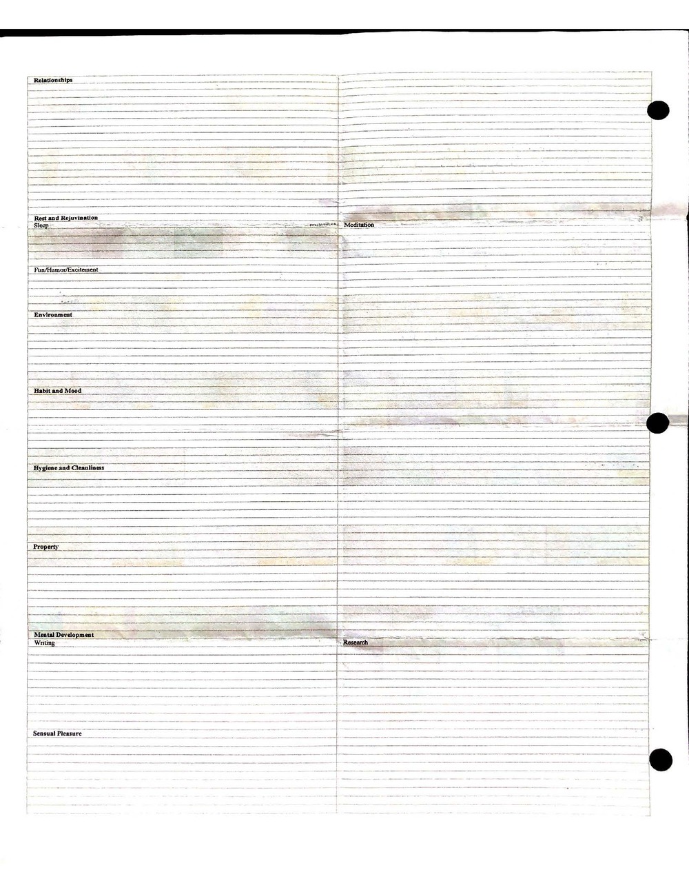 This is a highly personal and private document, shared for transparency, to give additional background on my work in moral philosophy. Its purpose is to enable personal self-help, but the overarching goal is moral in nature. I kept personal forms to track important activities in my life for a long period of time, and used the process to understand what it takes to make large amounts of personal changes independently. It is large, at ~410 MBs, and over 500 pages, so might take a bit to download and view. Not every form I filled was kept and included in this archive, and I suspect perhaps a hundred or so went missing. I kept very good records, but I do find pages on occasion that did not make it into the binder.