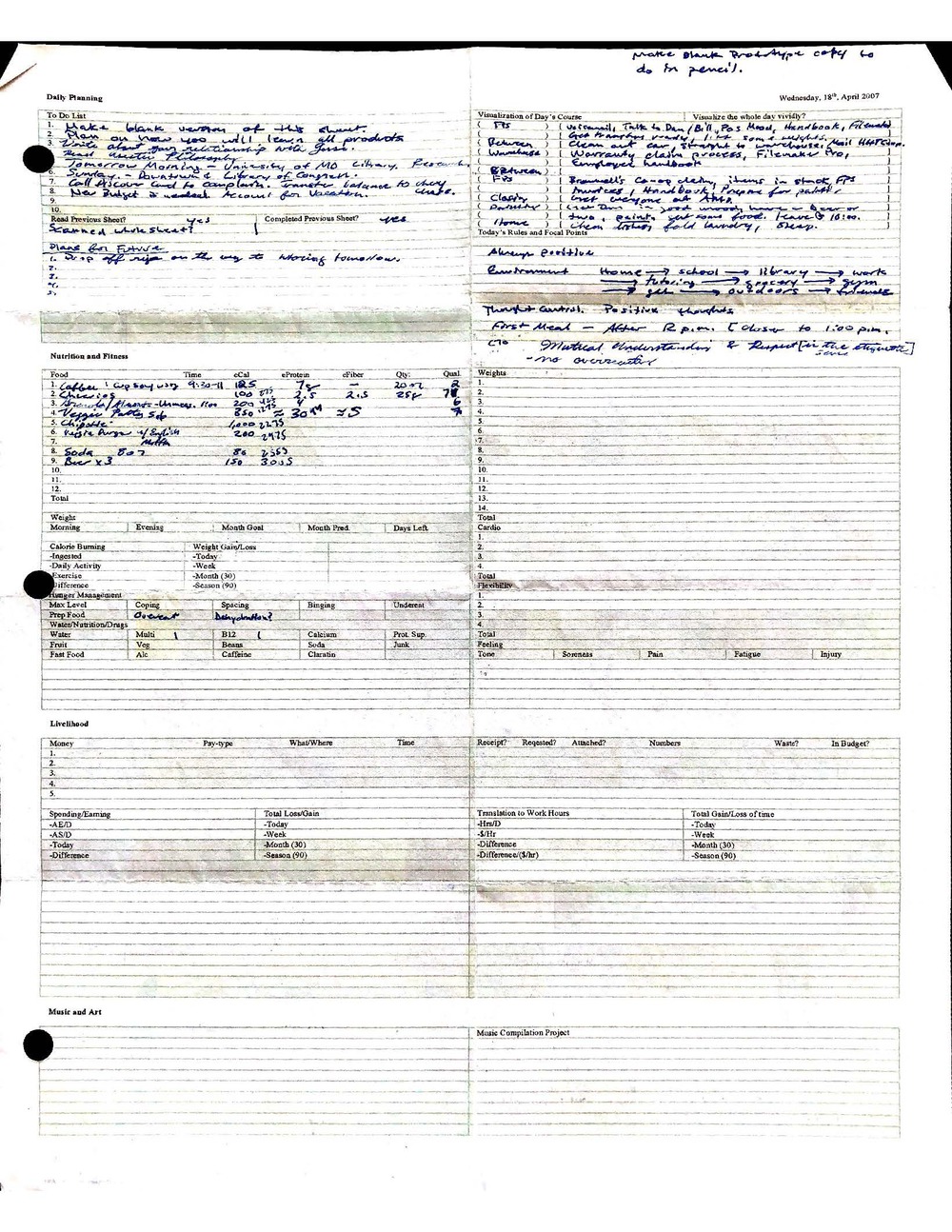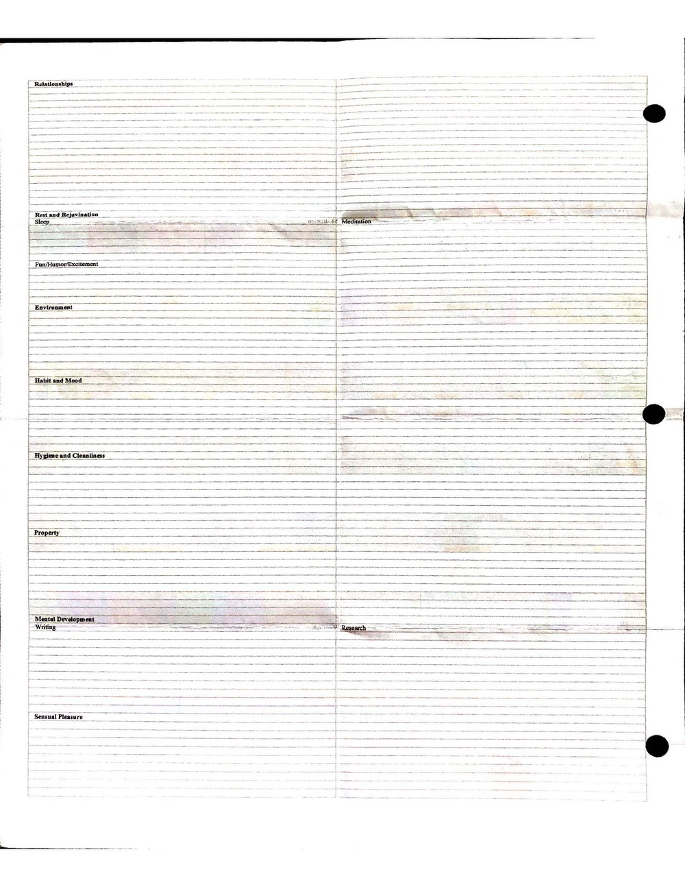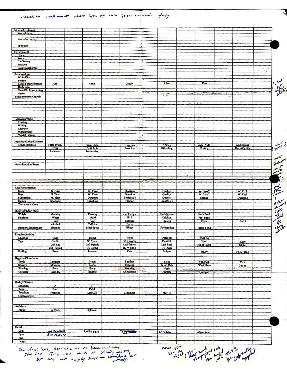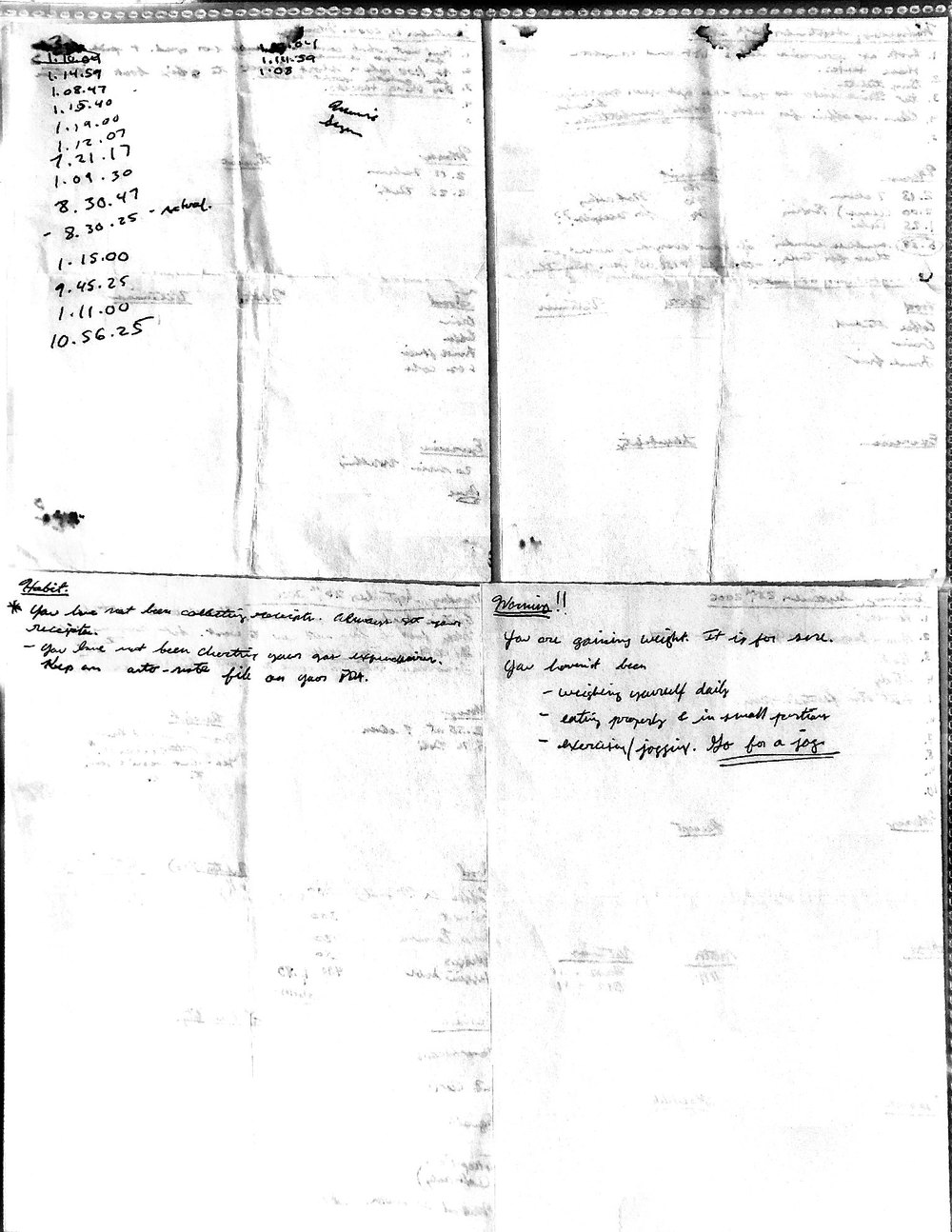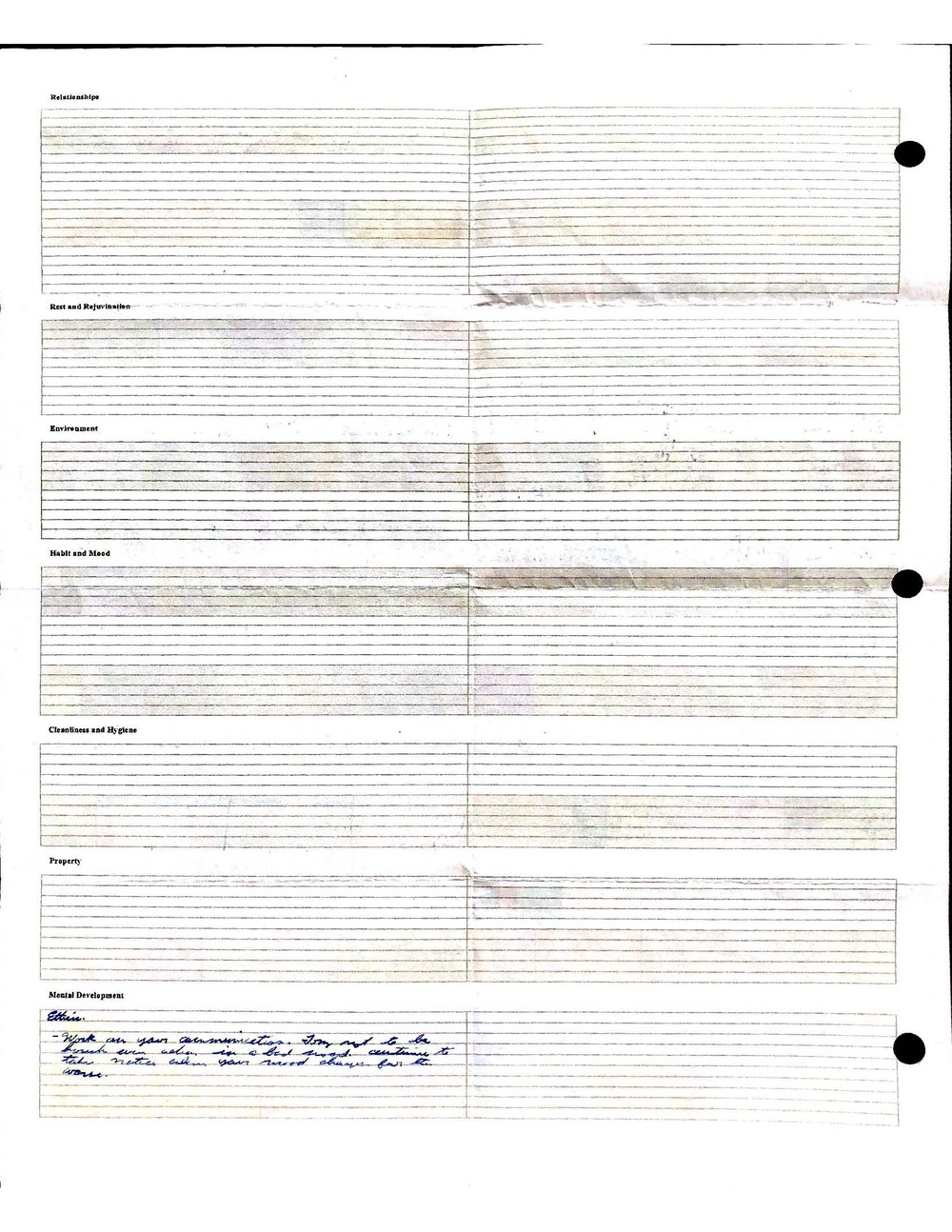 This is a highly personal and private document, shared for transparency, to give additional background on my work in moral philosophy. Its purpose is to enable personal self-help, but the overarching goal is moral in nature. I kept personal forms to track important activities in my life for a long period of time, and used the process to understand what it takes to make large amounts of personal changes independently. It is large, at ~410 MBs, and over 500 pages, so might take a bit to download and view. Not every form I filled was kept and included in this archive, and I suspect perhaps a hundred or so went missing. I kept very good records, but I do find pages on occasion that did not make it into the binder.
