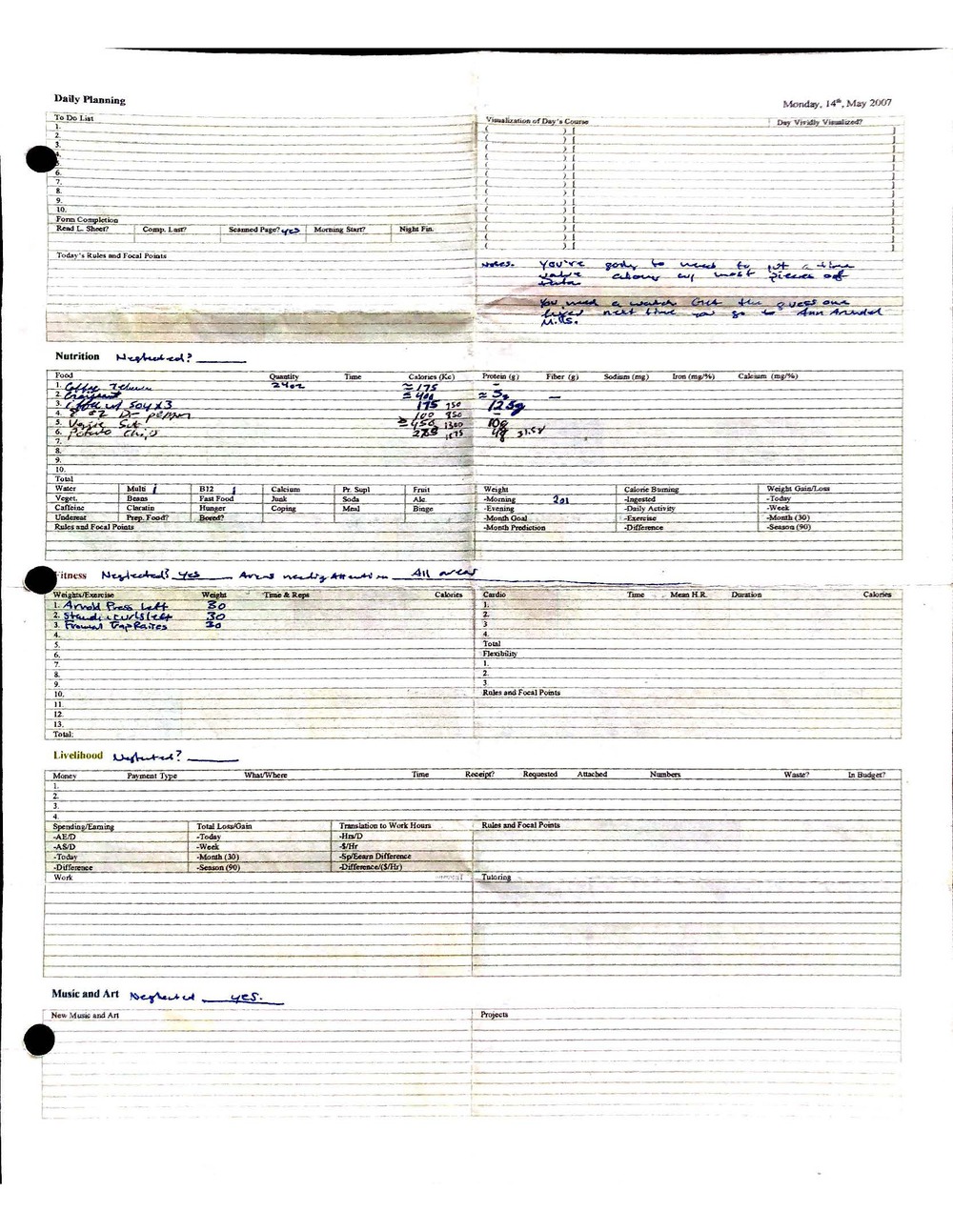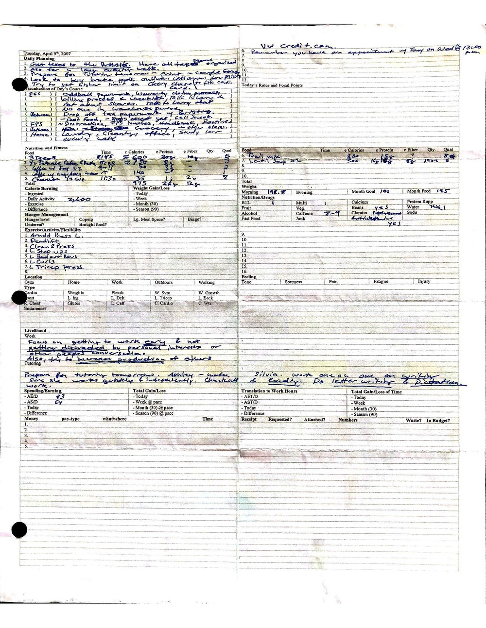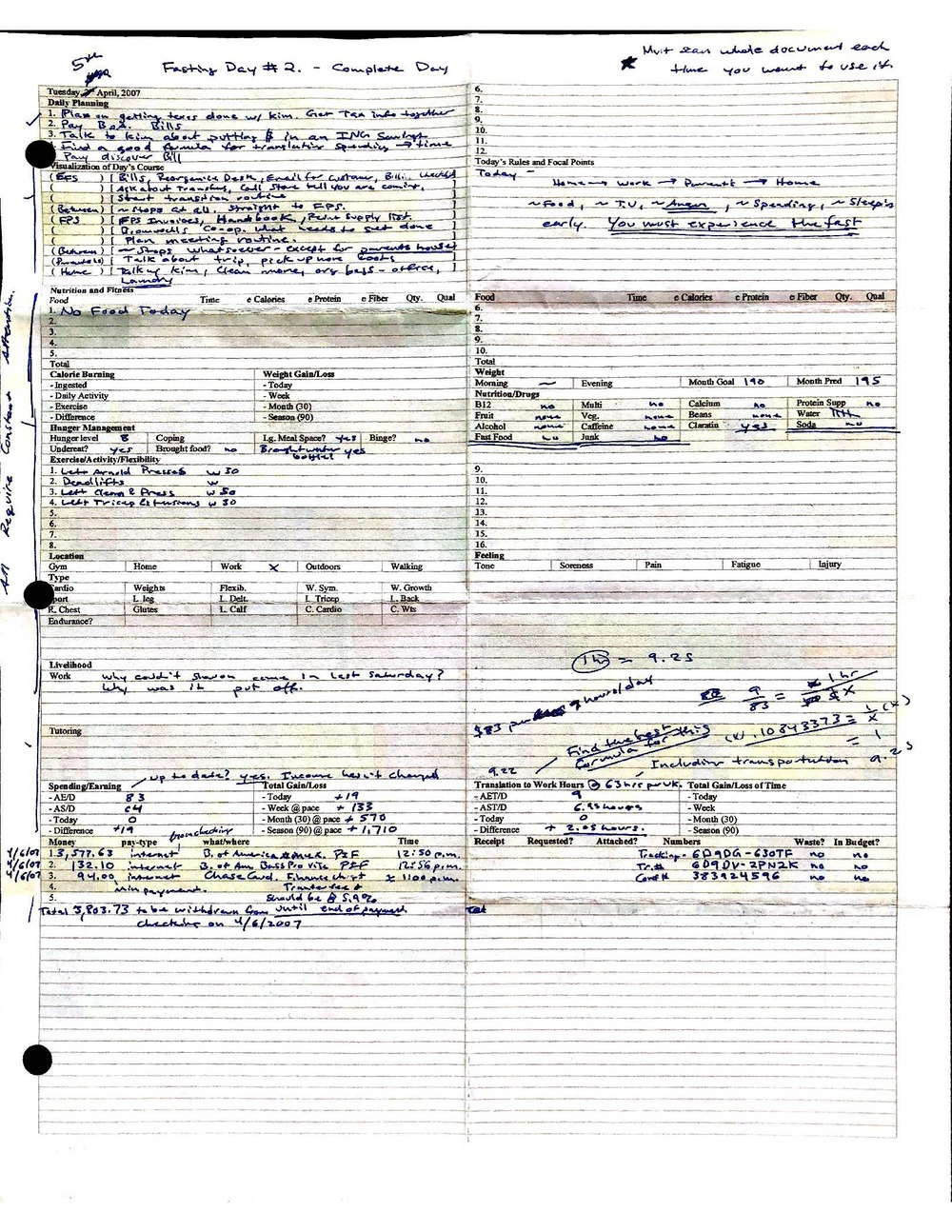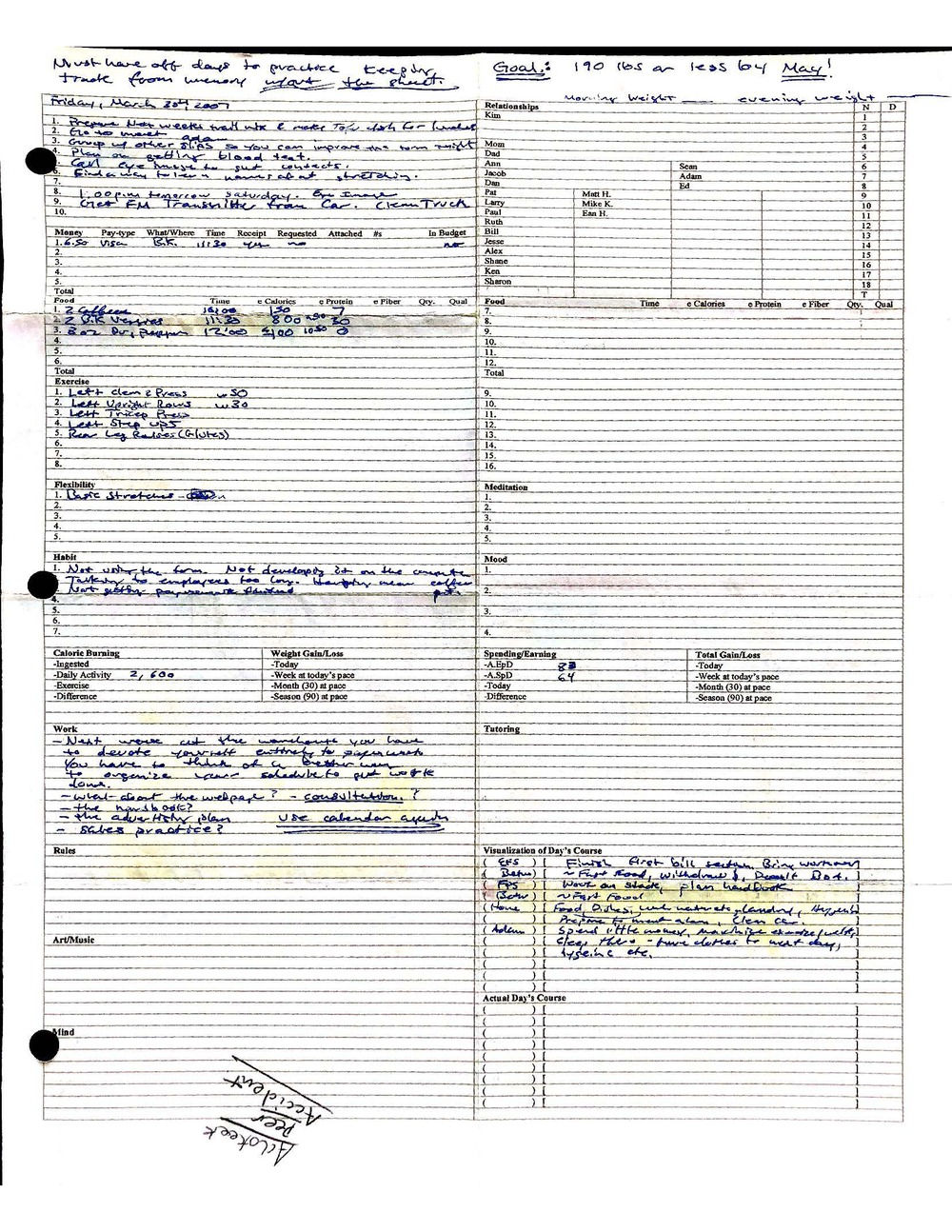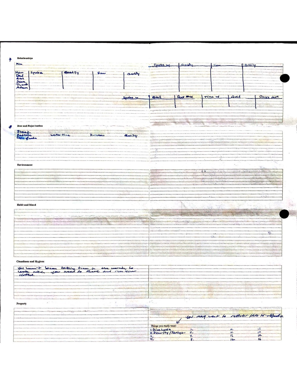 This is a highly personal and private document, shared for transparency, to give additional background on my work in moral philosophy. Its purpose is to enable personal self-help, but the overarching goal is moral in nature. I kept personal forms to track important activities in my life for a long period of time, and used the process to understand what it takes to make large amounts of personal changes independently. It is large, at ~410 MBs, and over 500 pages, so might take a bit to download and view. Not every form I filled was kept and included in this archive, and I suspect perhaps a hundred or so went missing. I kept very good records, but I do find pages on occasion that did not make it into the binder.