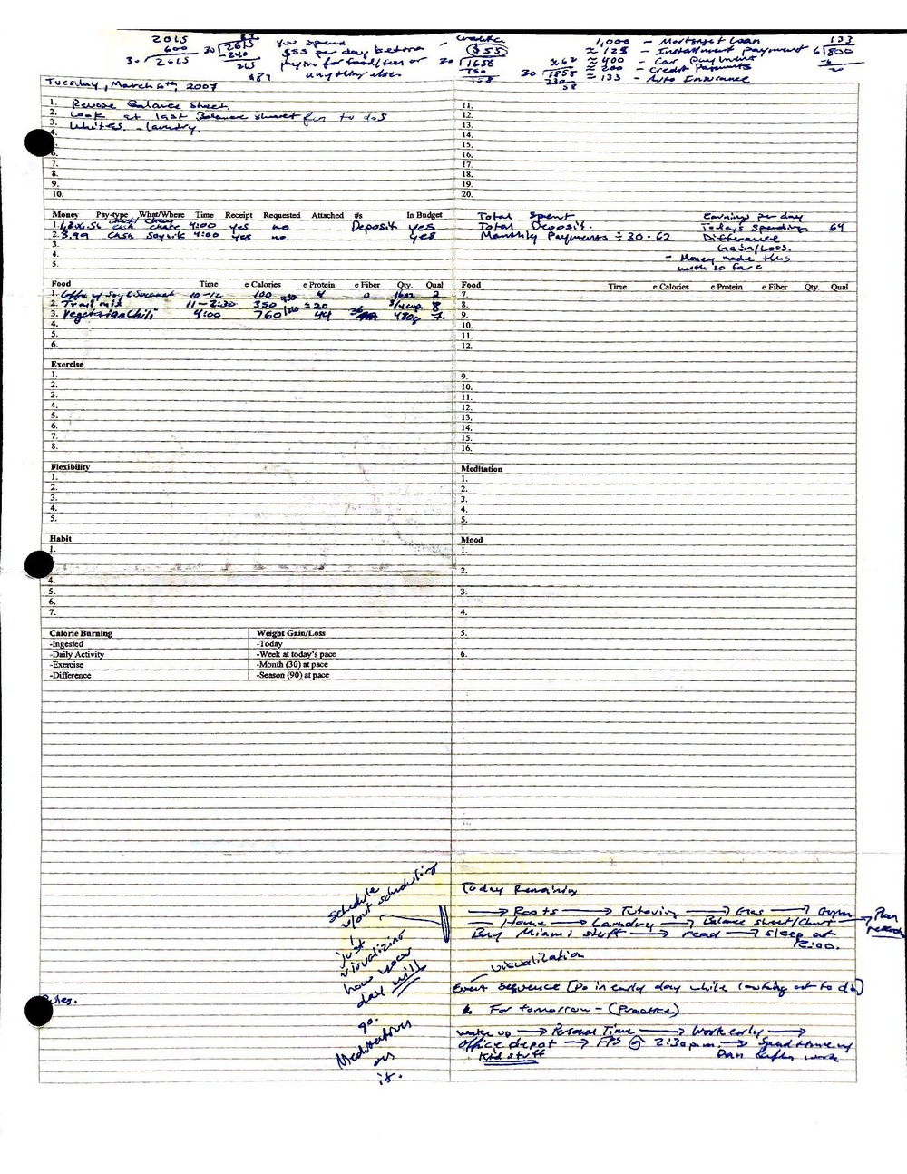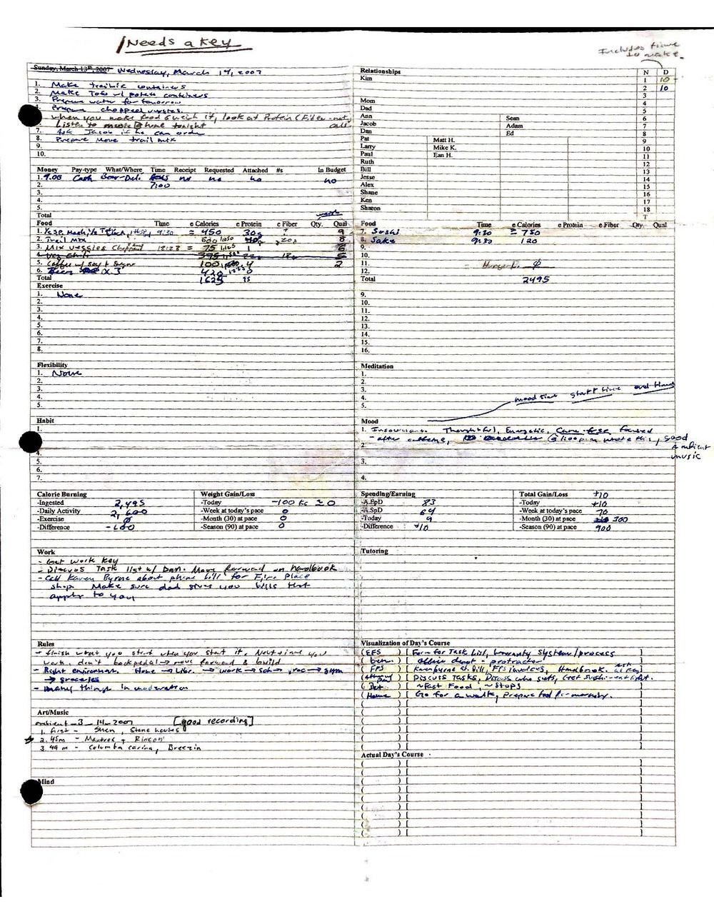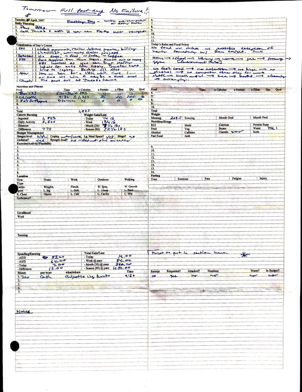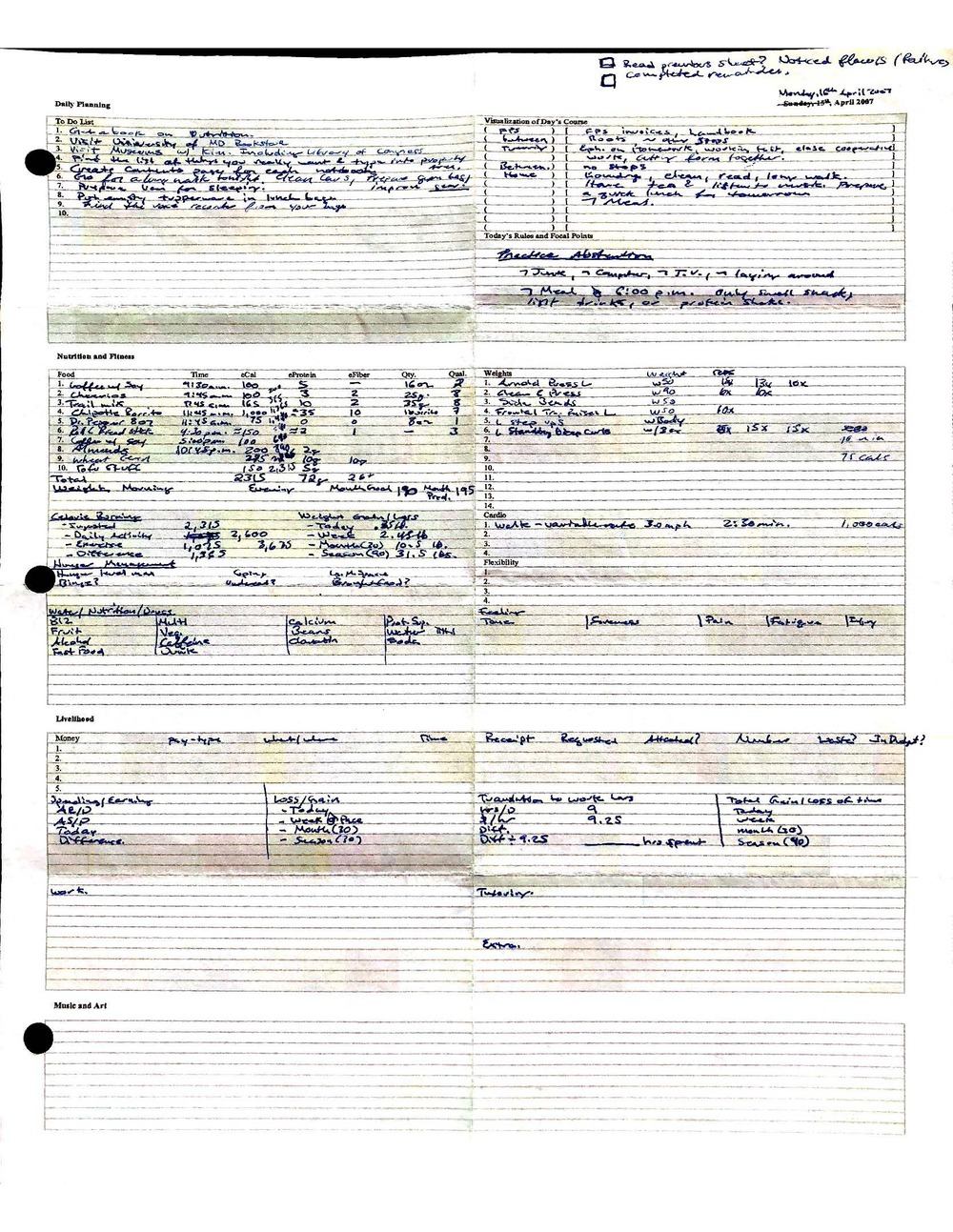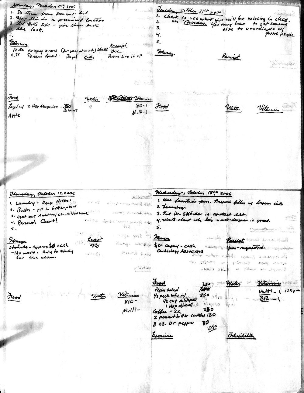 This is a highly personal and private document, shared for transparency, to give additional background on my work in moral philosophy. Its purpose is to enable personal self-help, but the overarching goal is moral in nature. I kept personal forms to track important activities in my life for a long period of time, and used the process to understand what it takes to make large amounts of personal changes independently. It is large, at ~410 MBs, and over 500 pages, so might take a bit to download and view. Not every form I filled was kept and included in this archive, and I suspect perhaps a hundred or so went missing. I kept very good records, but I do find pages on occasion that did not make it into the binder.
