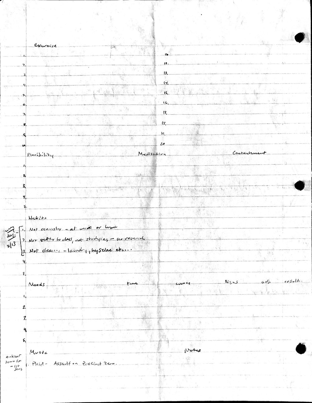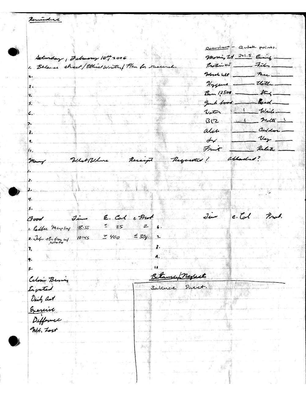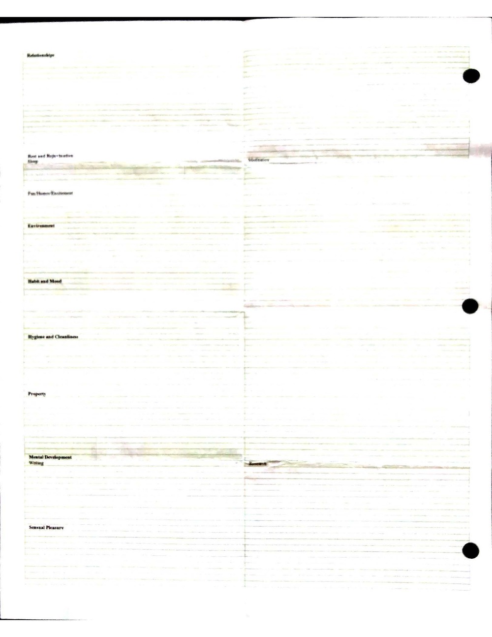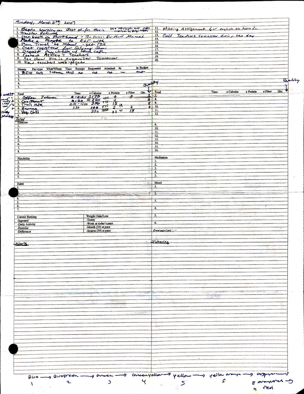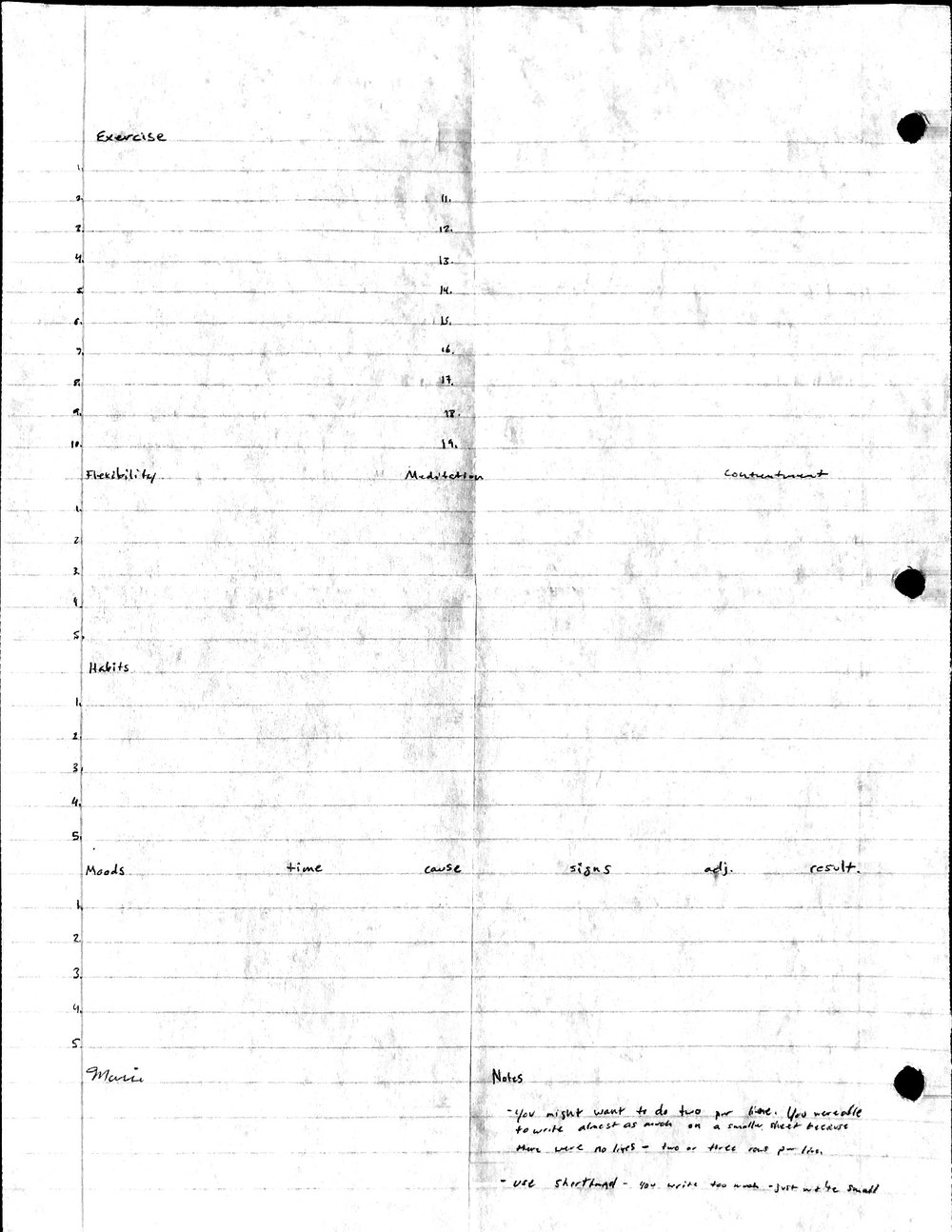 This is a highly personal and private document, shared for transparency, to give additional background on my work in moral philosophy. Its purpose is to enable personal self-help, but the overarching goal is moral in nature. I kept personal forms to track important activities in my life for a long period of time, and used the process to understand what it takes to make large amounts of personal changes independently. It is large, at ~410 MBs, and over 500 pages, so might take a bit to download and view. Not every form I filled was kept and included in this archive, and I suspect perhaps a hundred or so went missing. I kept very good records, but I do find pages on occasion that did not make it into the binder.