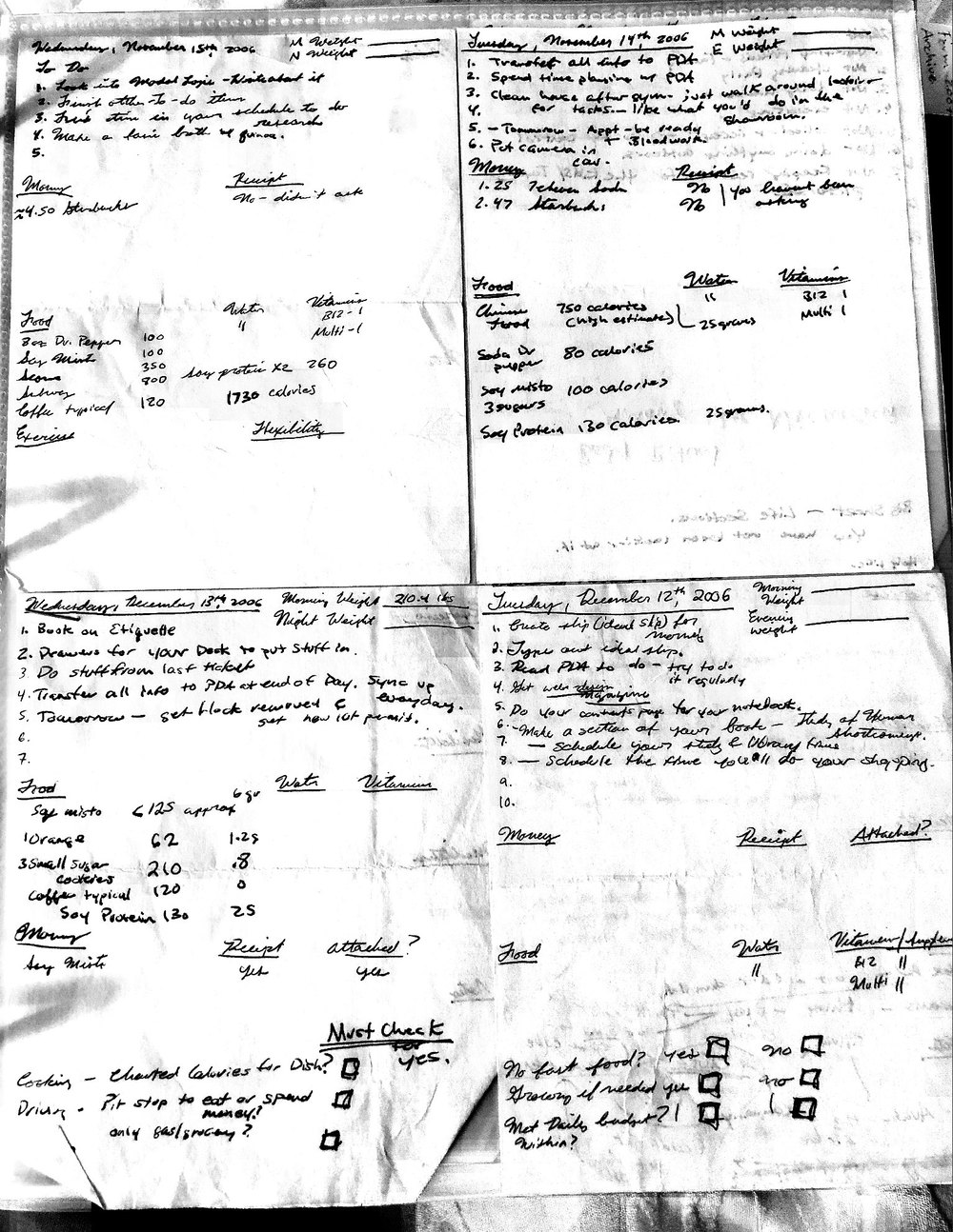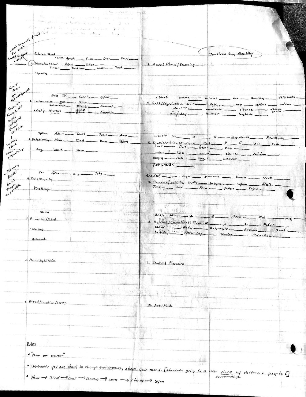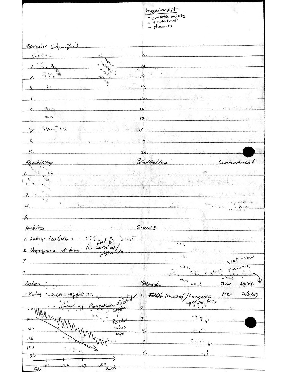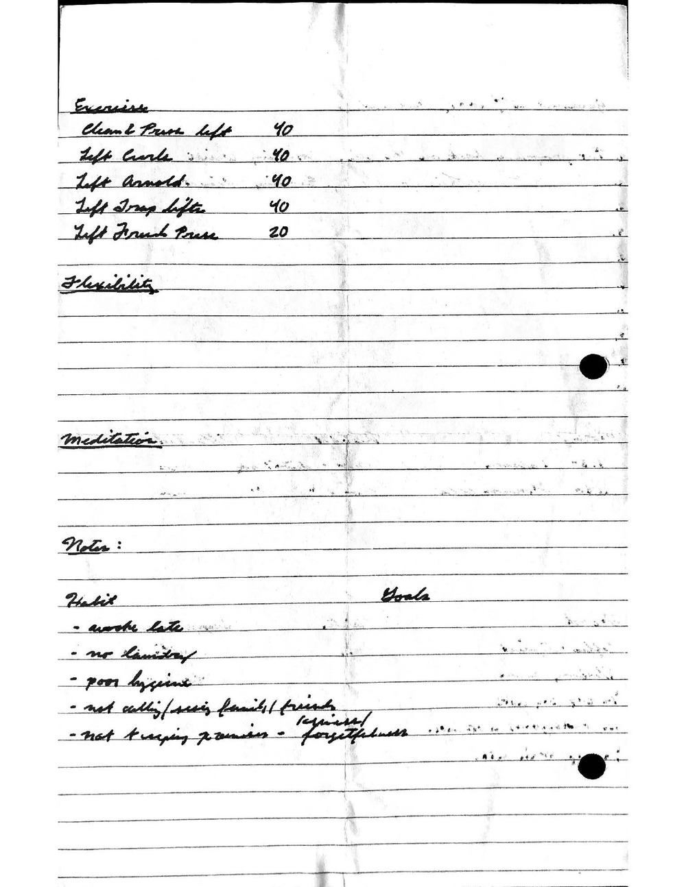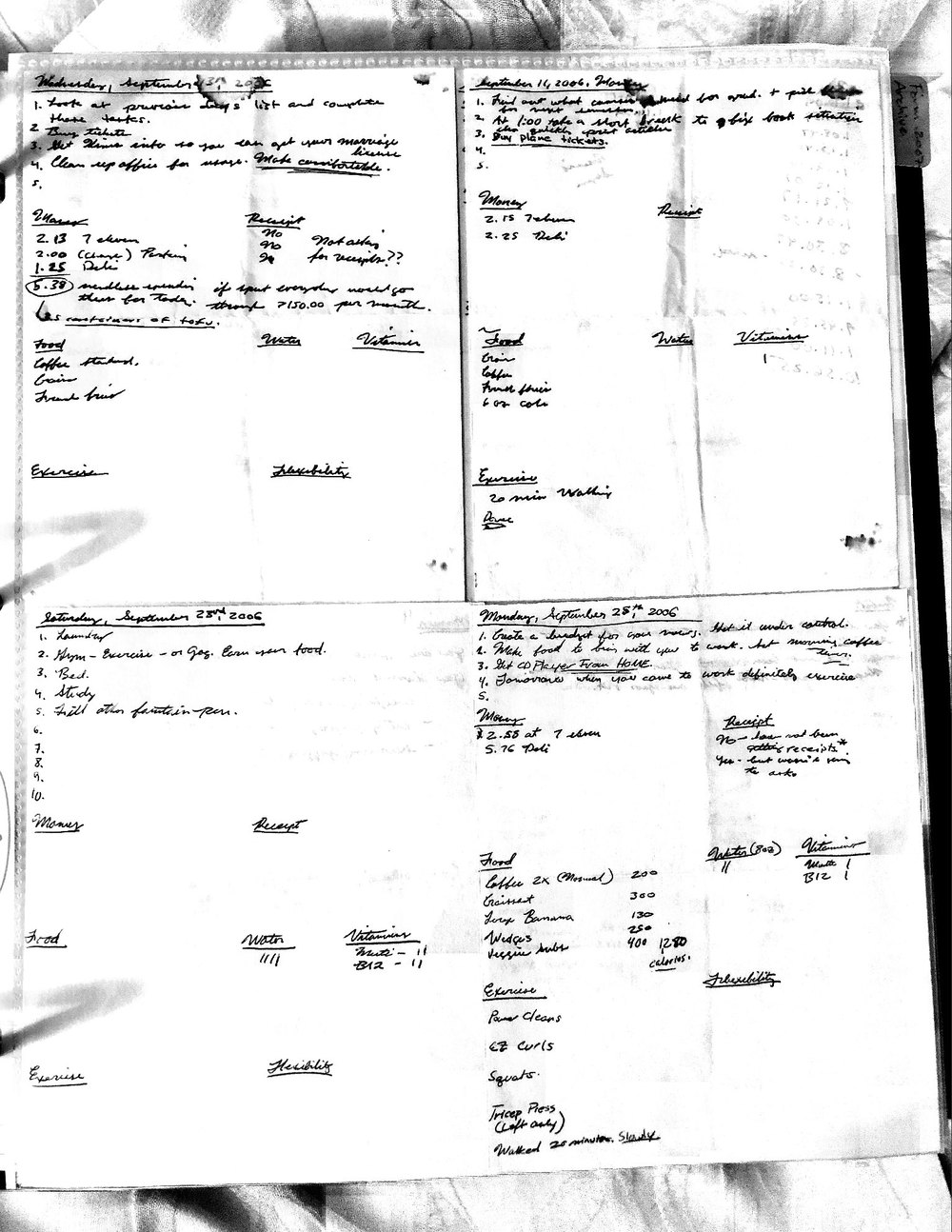 This is a highly personal and private document, shared for transparency, to give additional background on my work in moral philosophy. Its purpose is to enable personal self-help, but the overarching goal is moral in nature. I kept personal forms to track important activities in my life for a long period of time, and used the process to understand what it takes to make large amounts of personal changes independently. It is large, at ~410 MBs, and over 500 pages, so might take a bit to download and view. Not every form I filled was kept and included in this archive, and I suspect perhaps a hundred or so went missing. I kept very good records, but I do find pages on occasion that did not make it into the binder.
