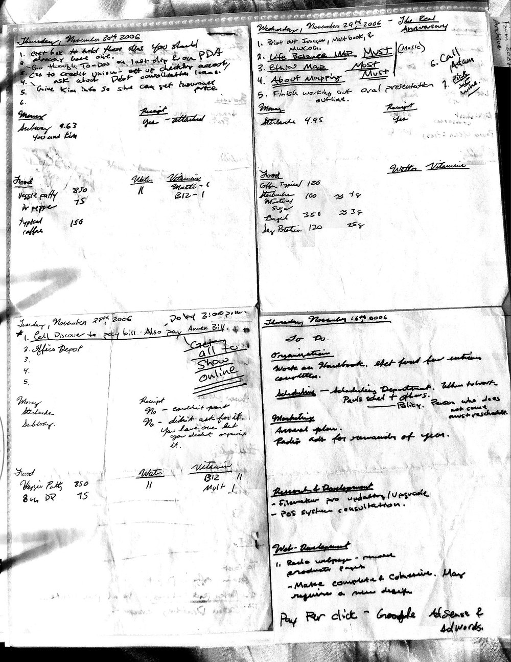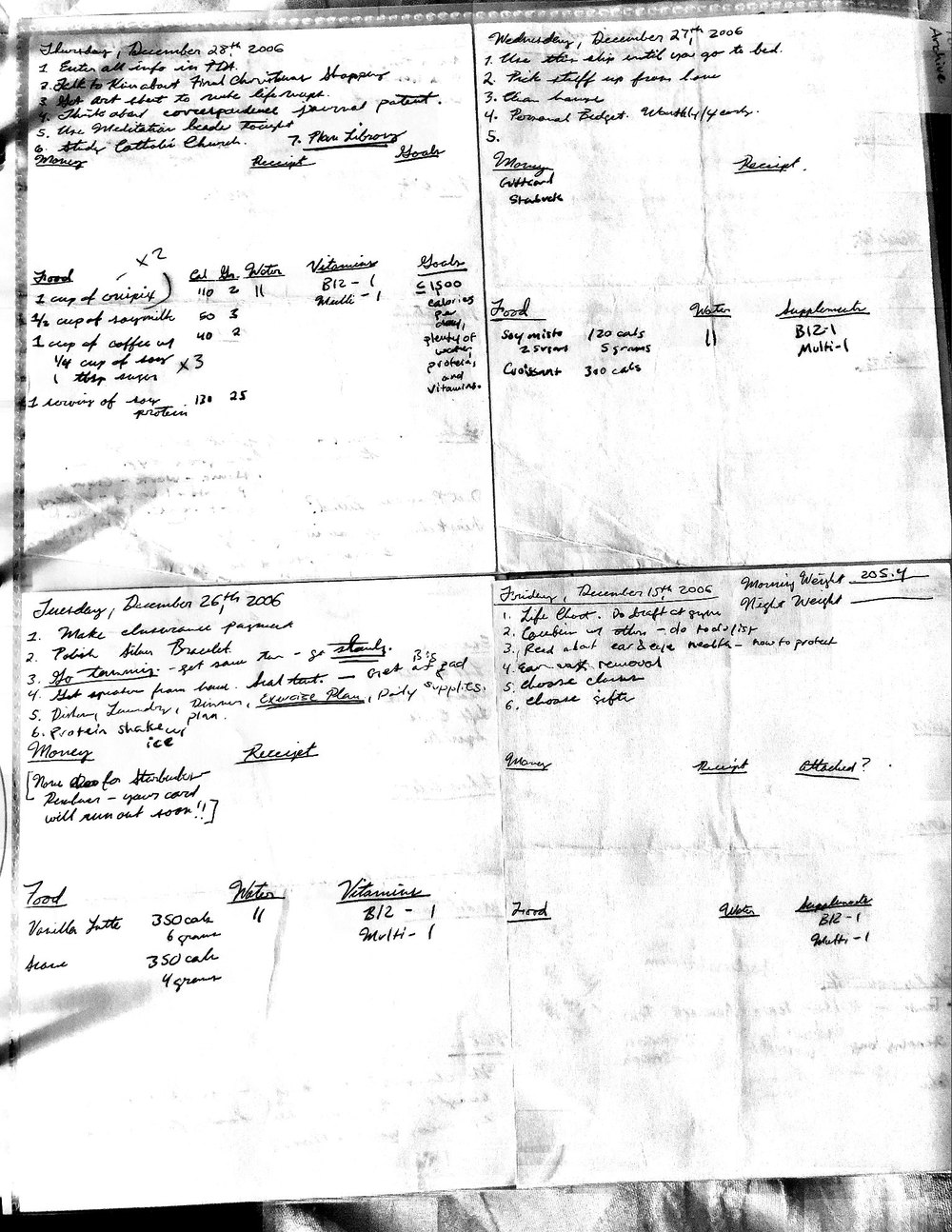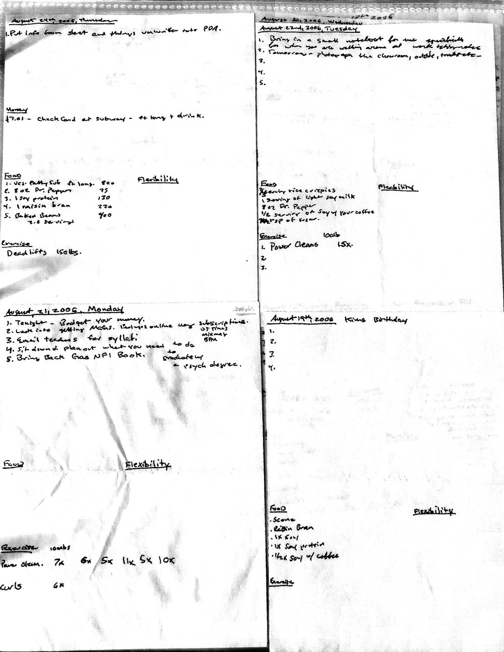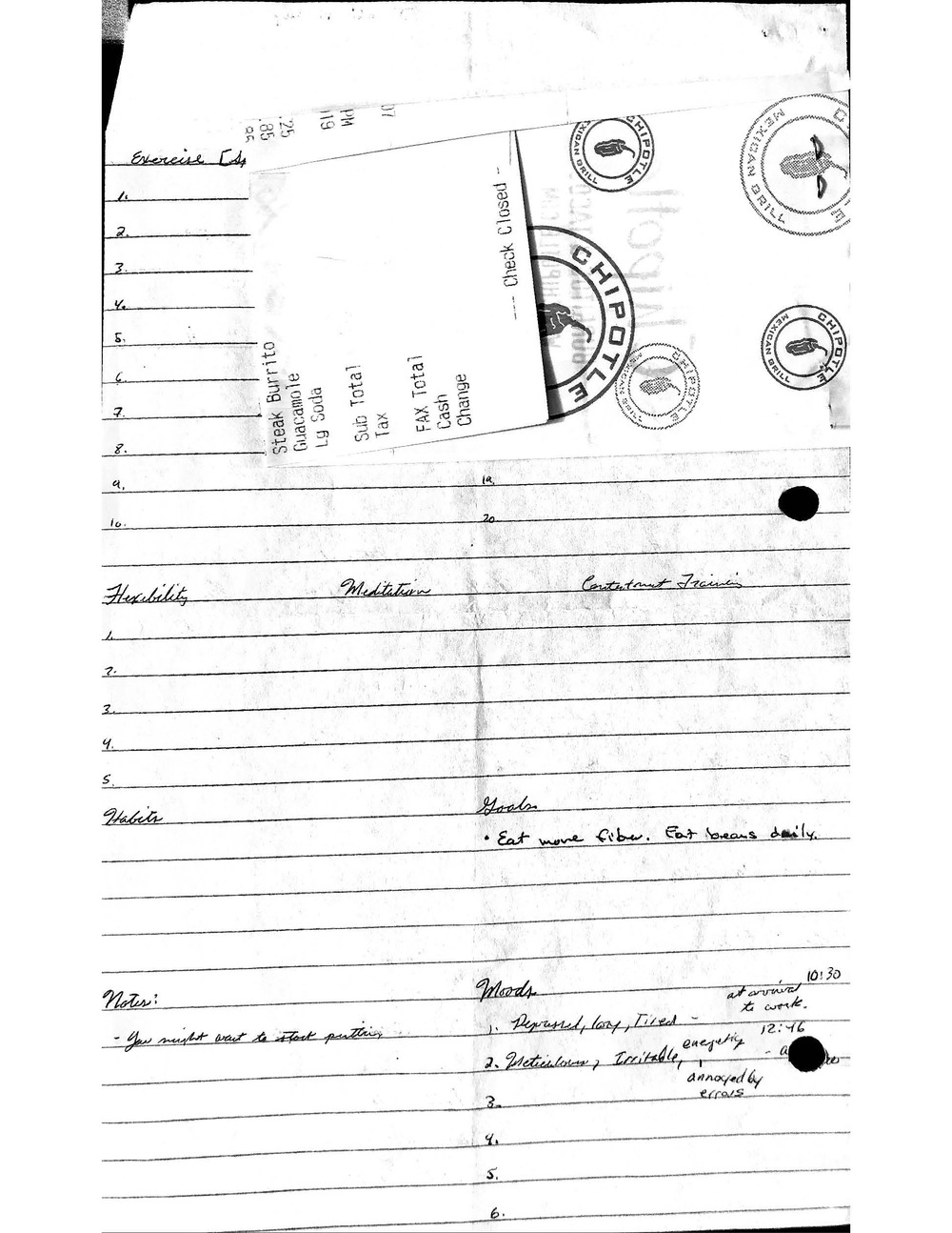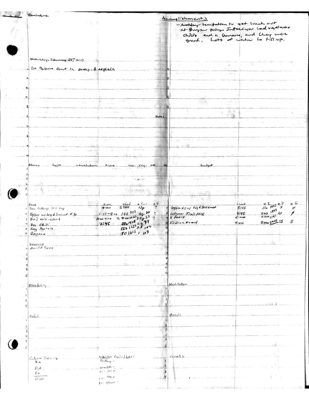 This is a highly personal and private document, shared for transparency, to give additional background on my work in moral philosophy. Its purpose is to enable personal self-help, but the overarching goal is moral in nature. I kept personal forms to track important activities in my life for a long period of time, and used the process to understand what it takes to make large amounts of personal changes independently. It is large, at ~410 MBs, and over 500 pages, so might take a bit to download and view. Not every form I filled was kept and included in this archive, and I suspect perhaps a hundred or so went missing. I kept very good records, but I do find pages on occasion that did not make it into the binder.