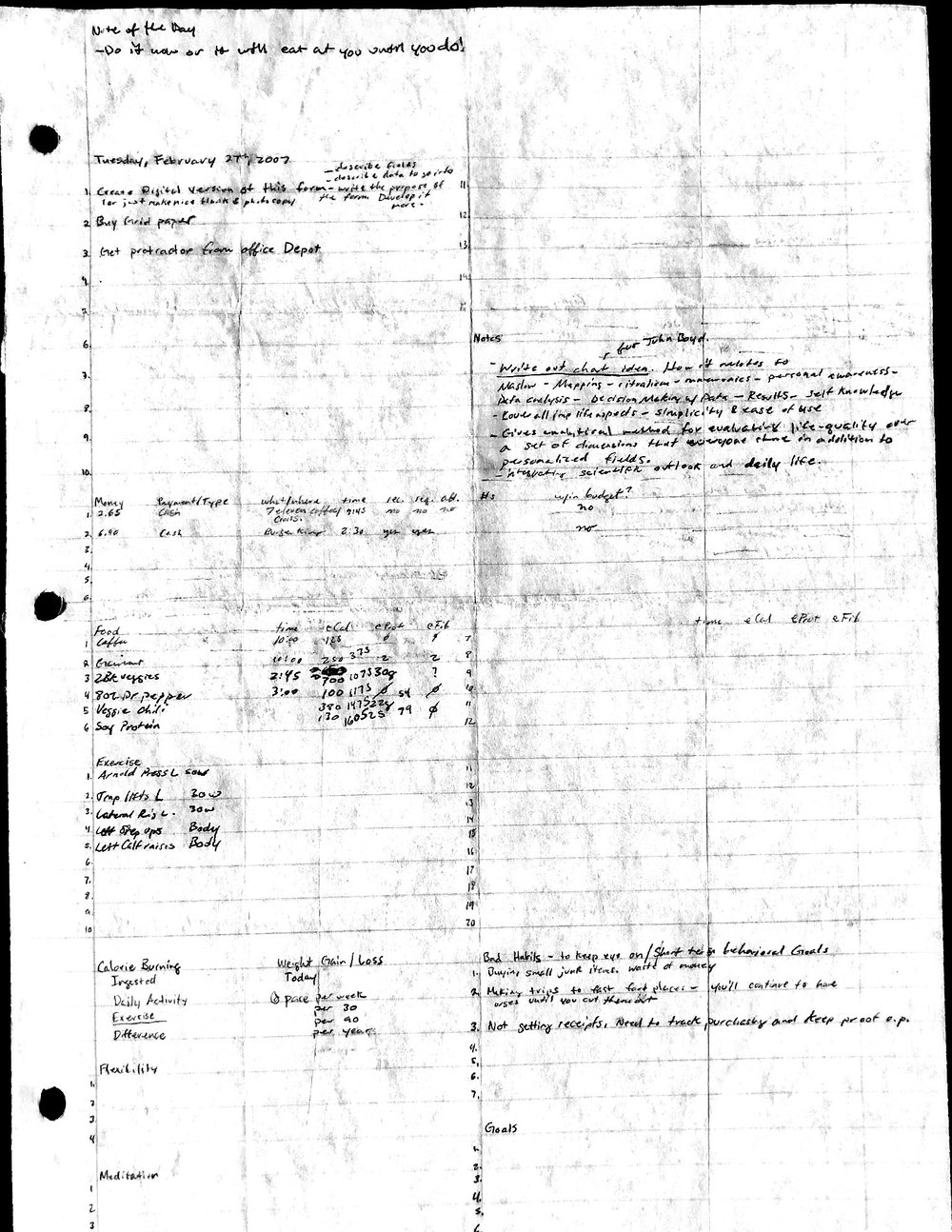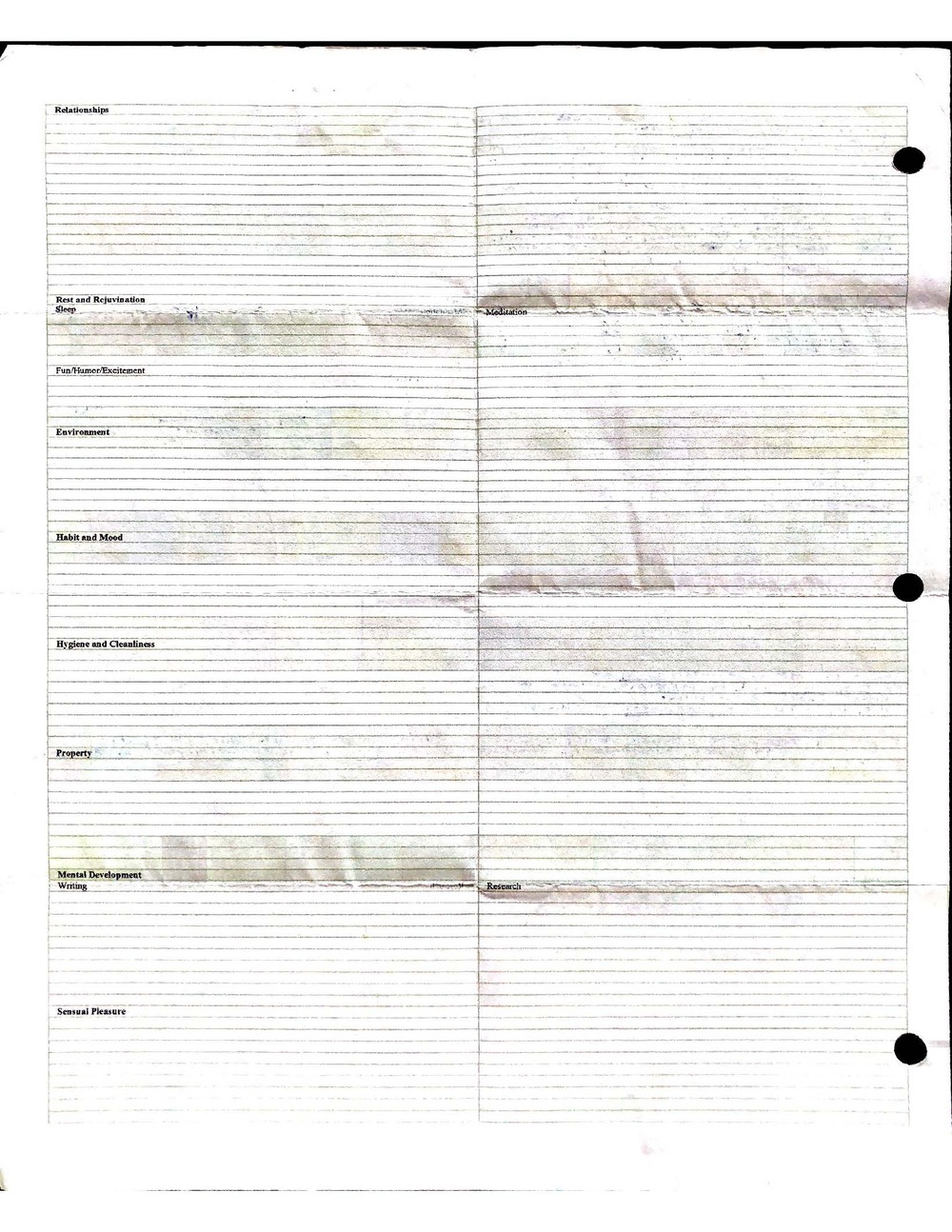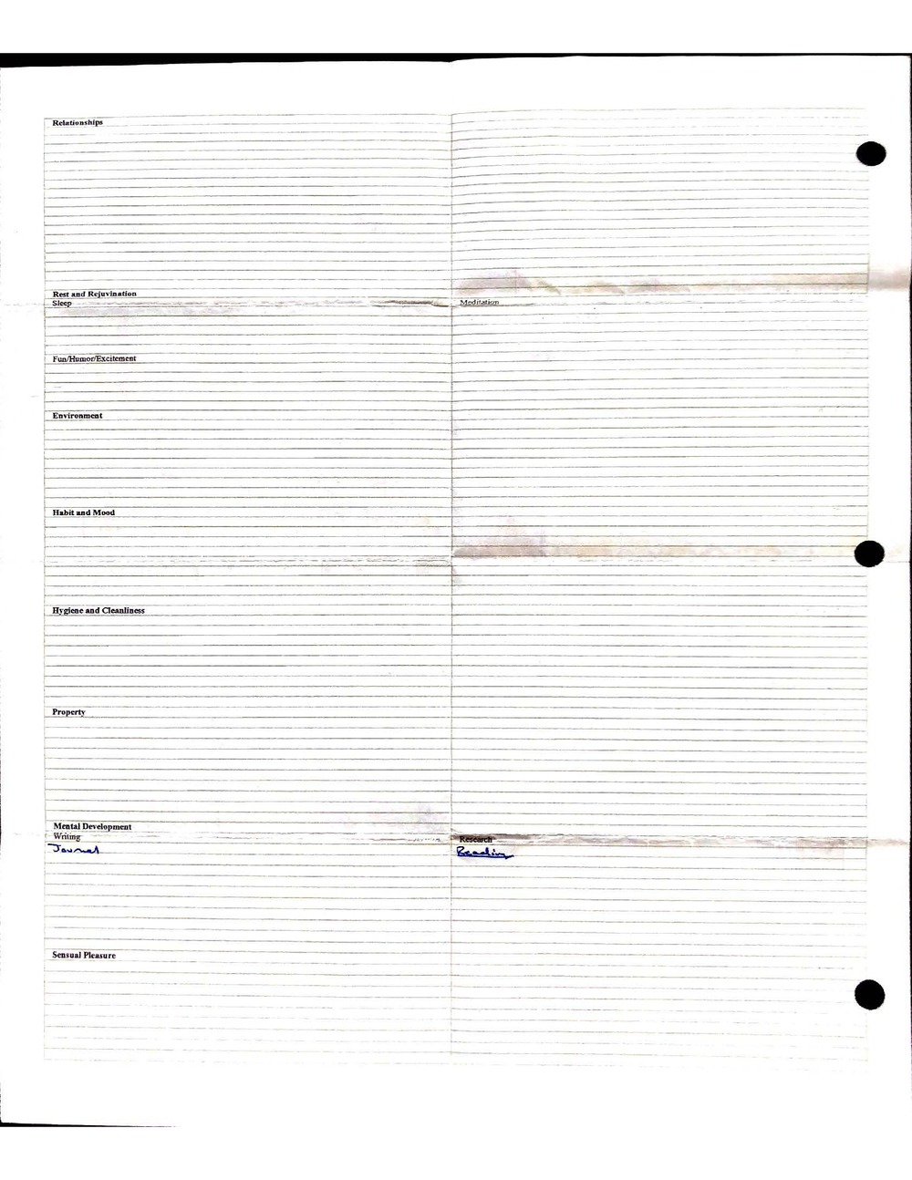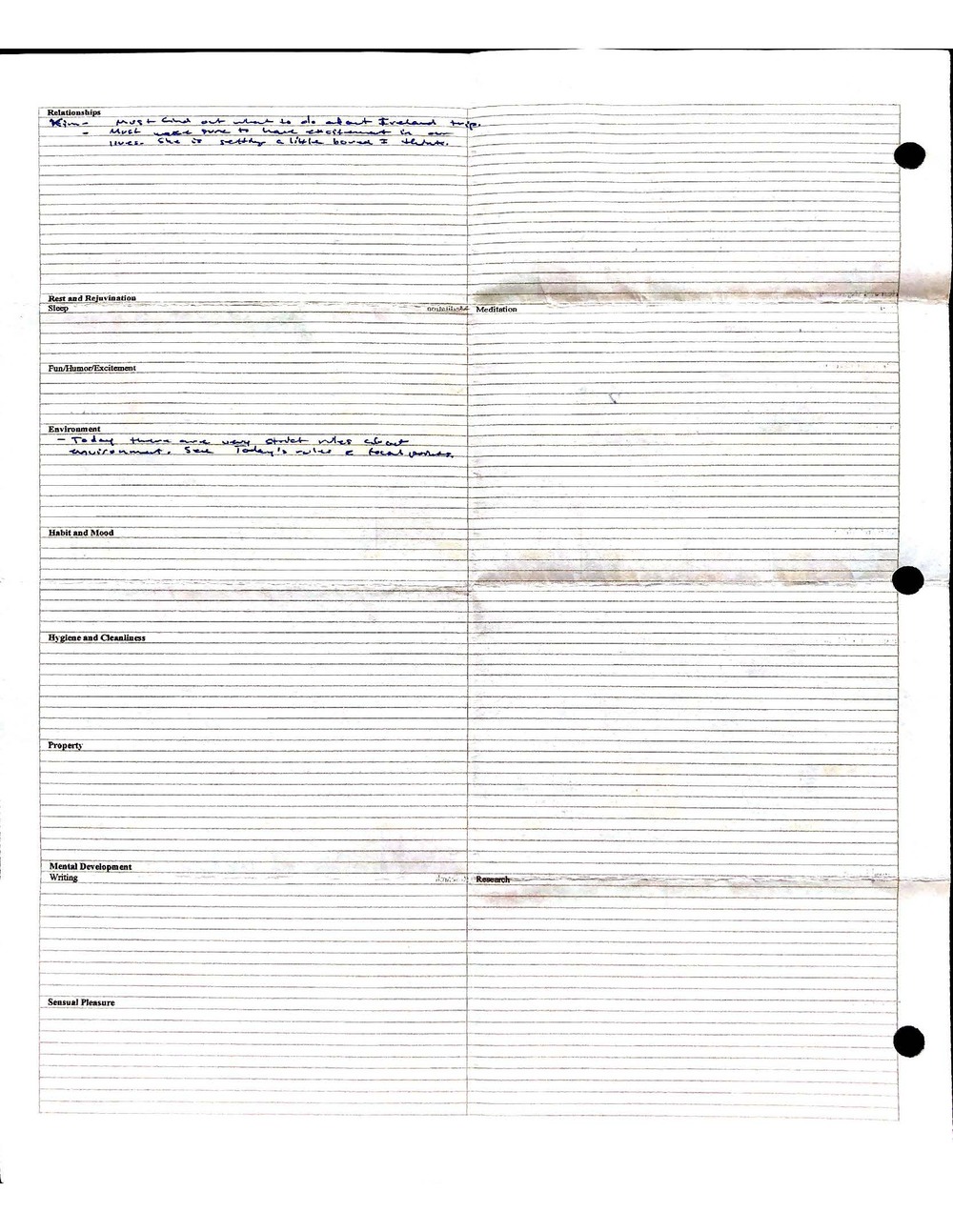 I will explain this document in an article in the near future, and more completely in my upcoming work on ethics. There is far more than meets the eye going on with this journal, and much has been learned through years of its evolution and use. My reflections on my experiences using this form are vastly more important than the form itself. Not much of these experiences can be inferred from reading the document itself. However, following the same process yourself would likely lead you to some of the same intuitions I came to have myself.