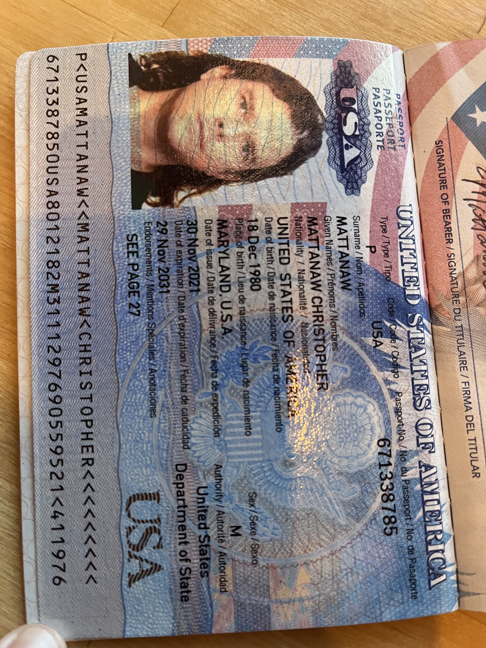 My passport after my name change from Christopher Matthew Cavanaugh to Mattanaw.
