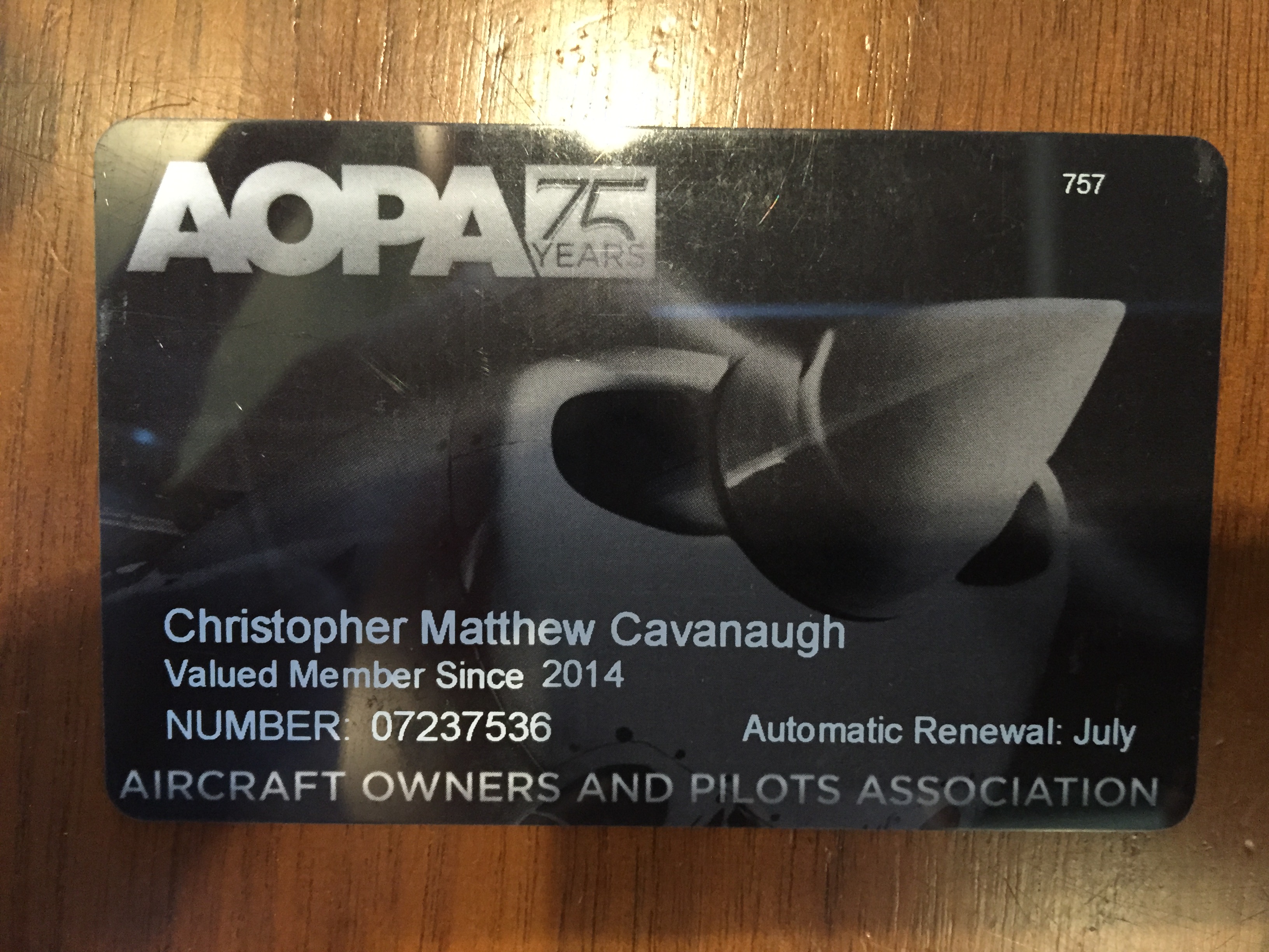 My AOPA membership card