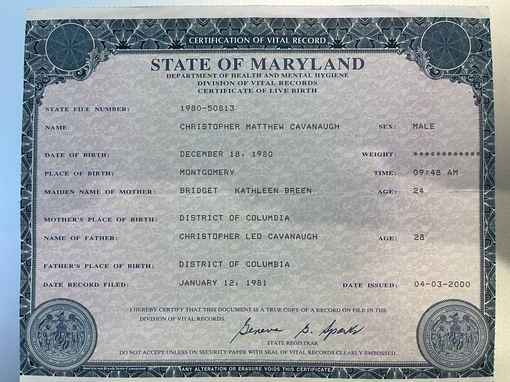 The following is my birth certificate.