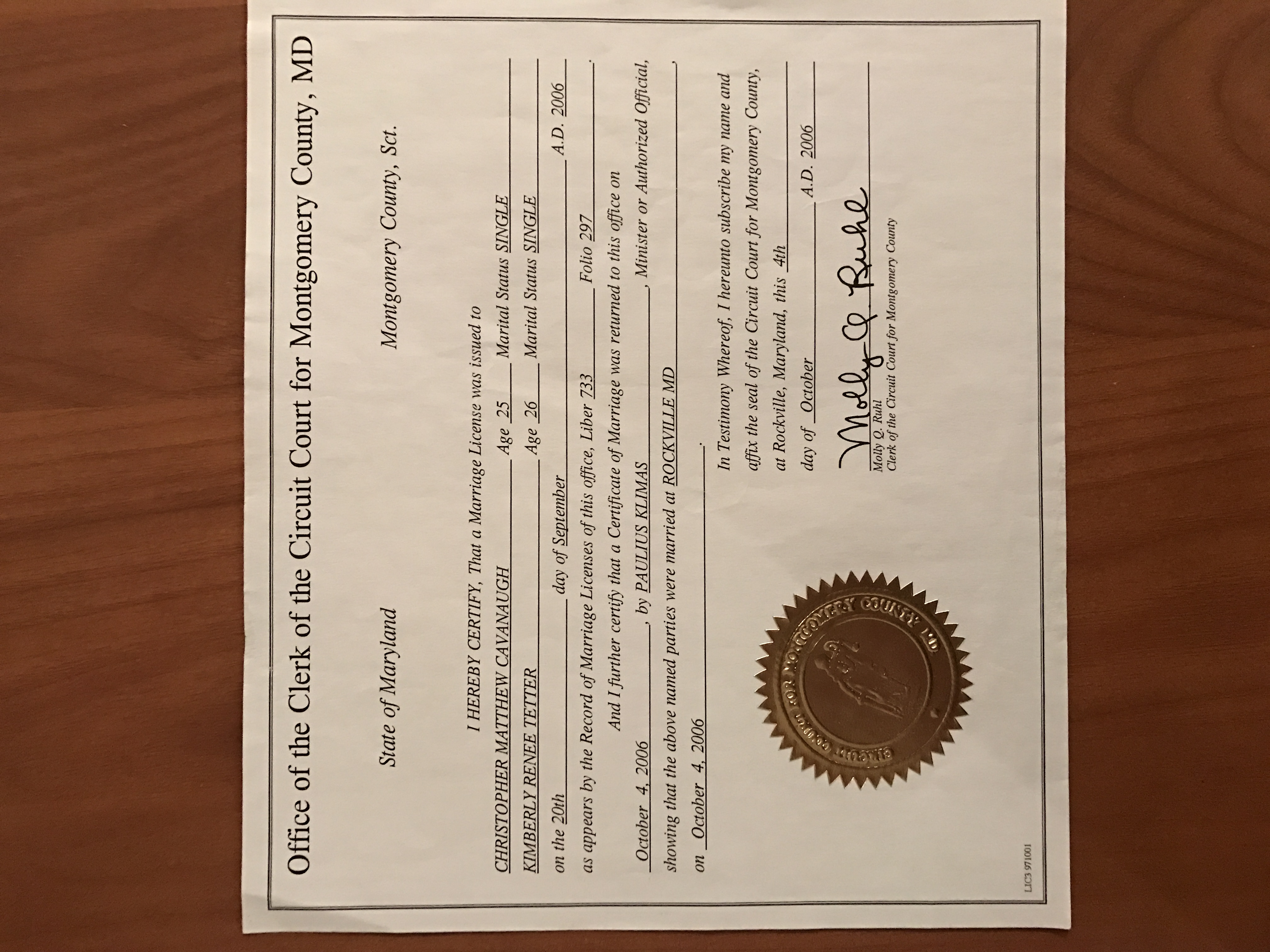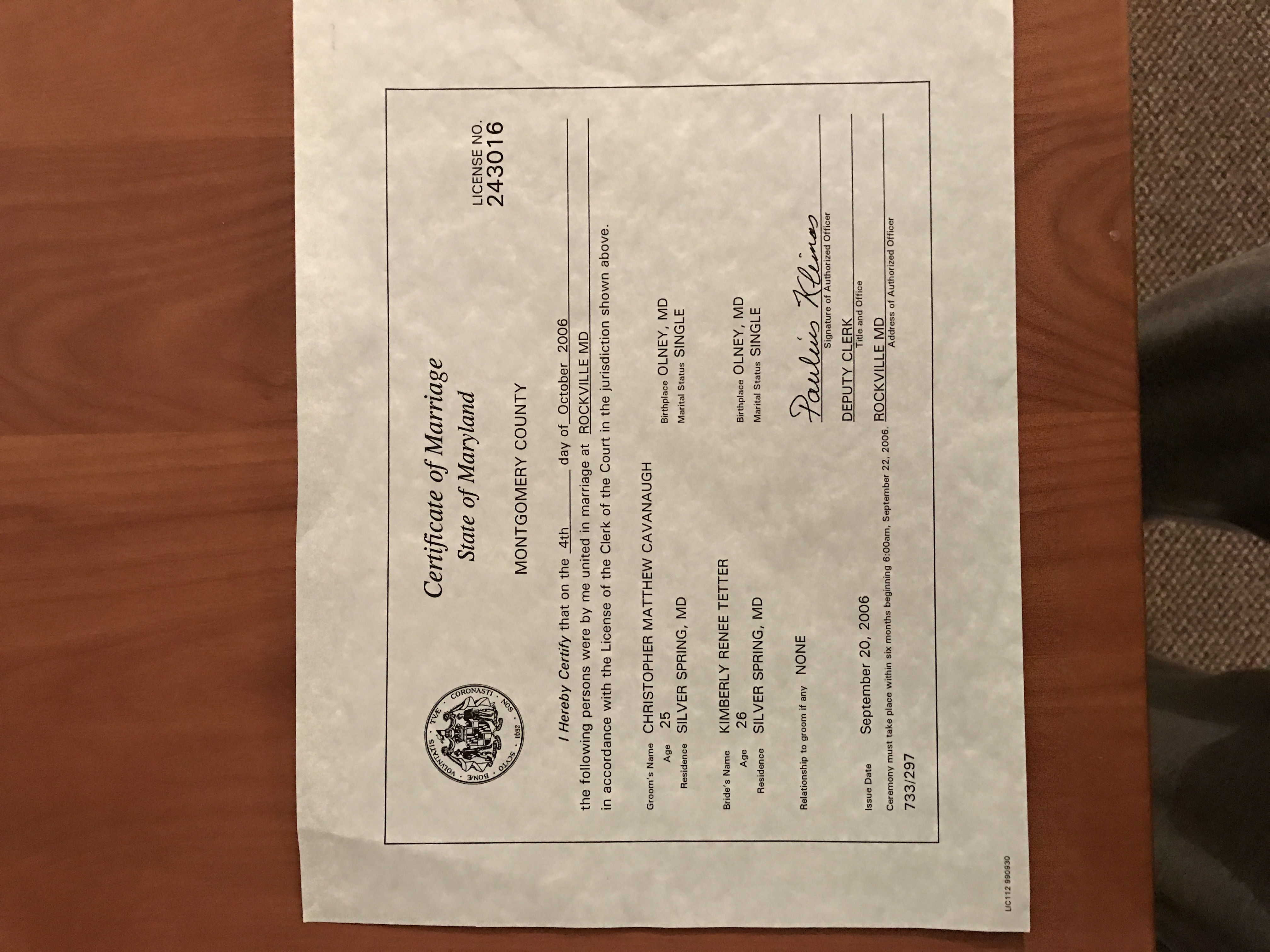 Marriage Certificate