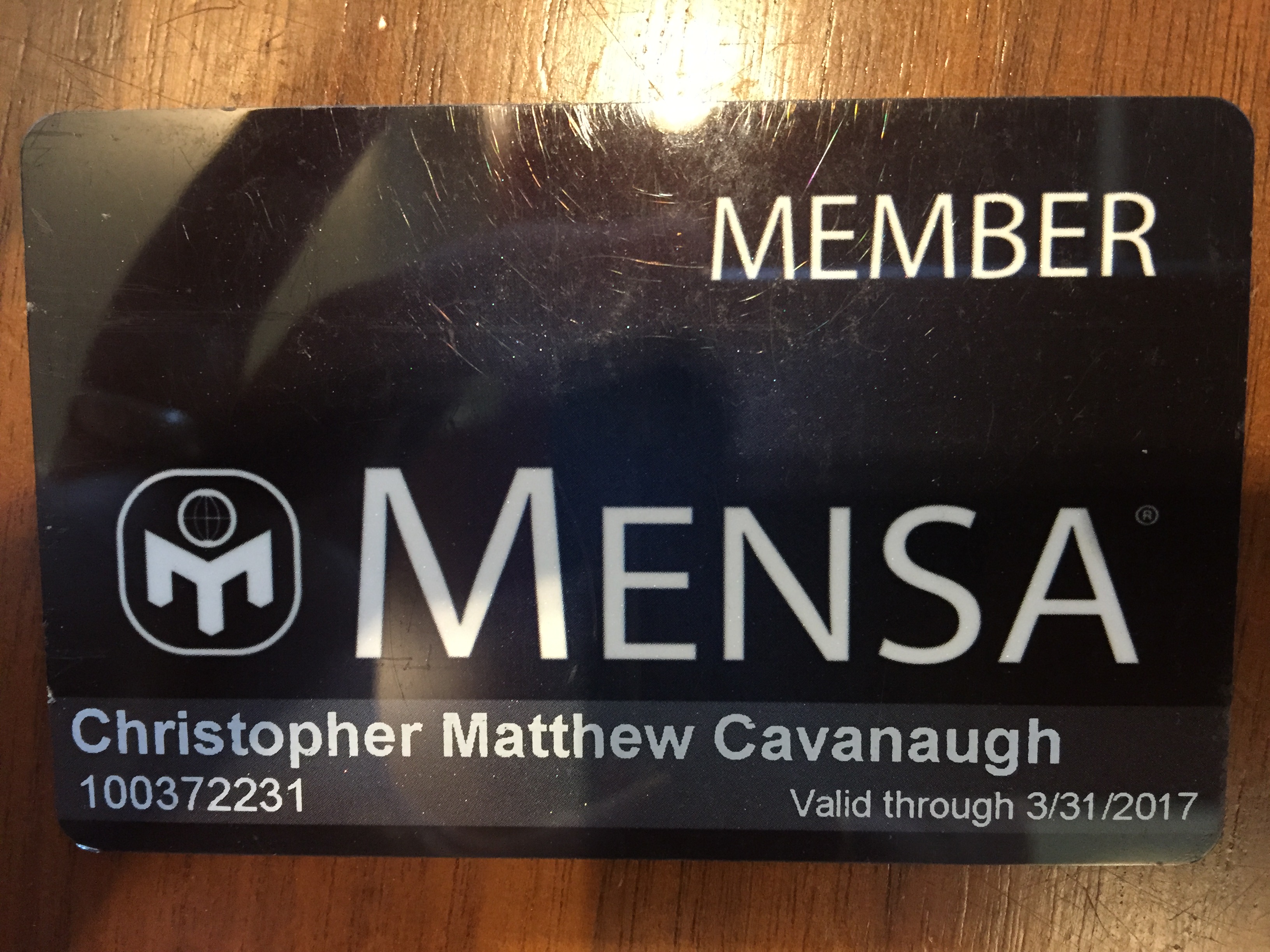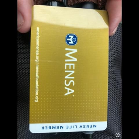Here is my regular Mensa ID card, that doesn’t reflect my Lifetime status, but further corroborates membership: