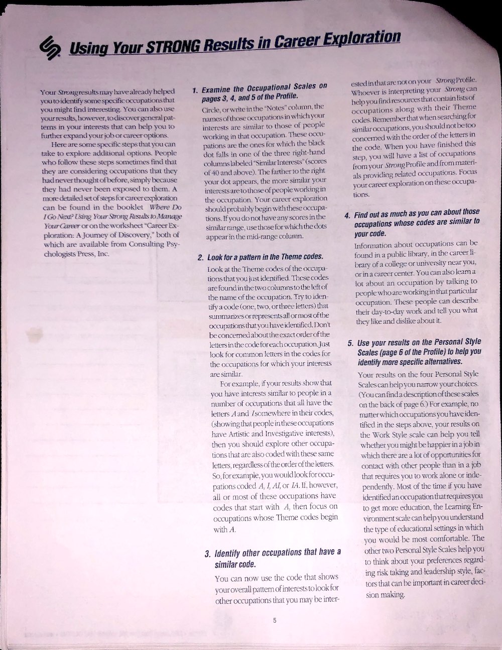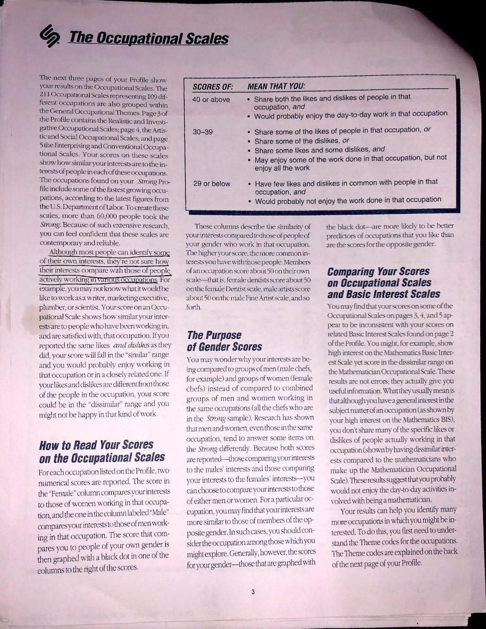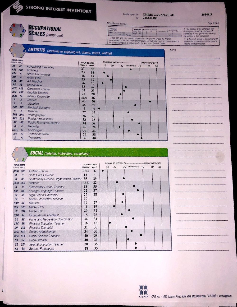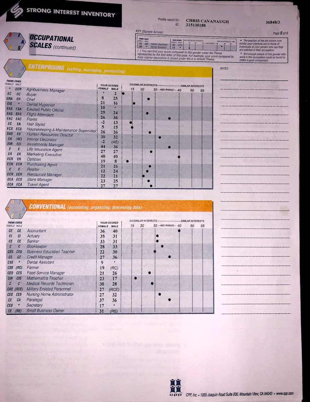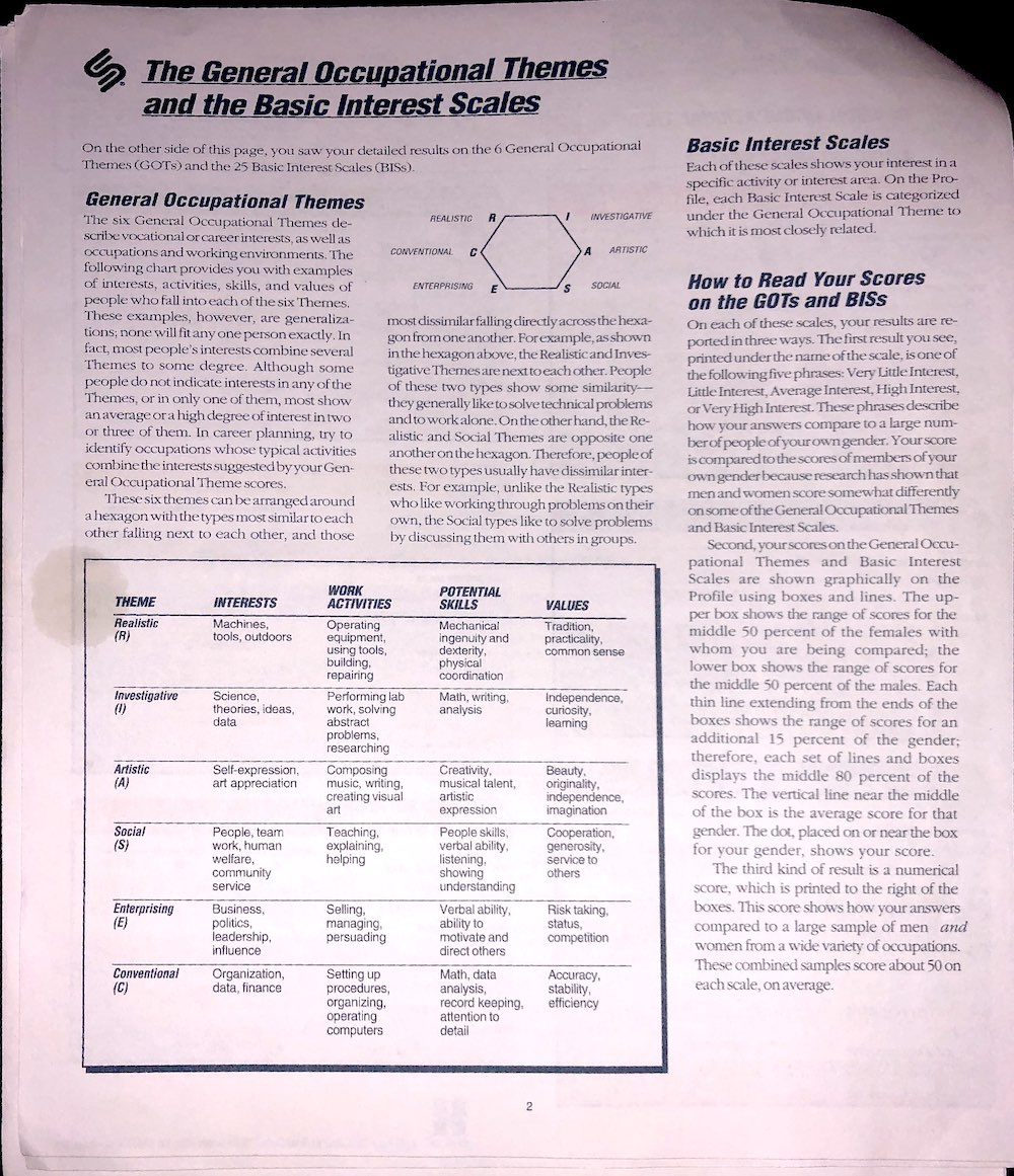 Not only will I be posting results for physiological examinations, I will be posting psychological tests as well, like this copy of the Strong Interest Inventory, and the Myers Briggs, and others I might take in the nearish future.